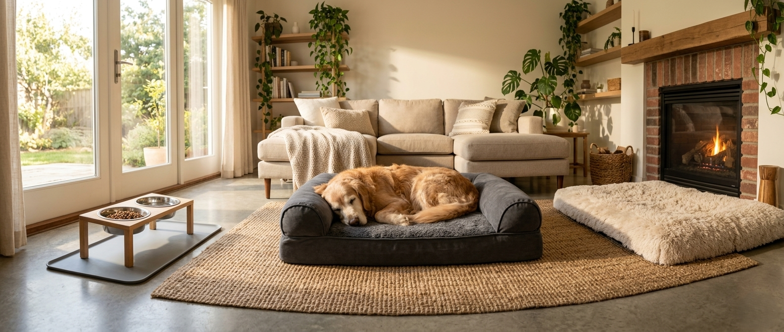 Orthopedic comfort, traction support, easier access, and calmer routines for aging dogs.
