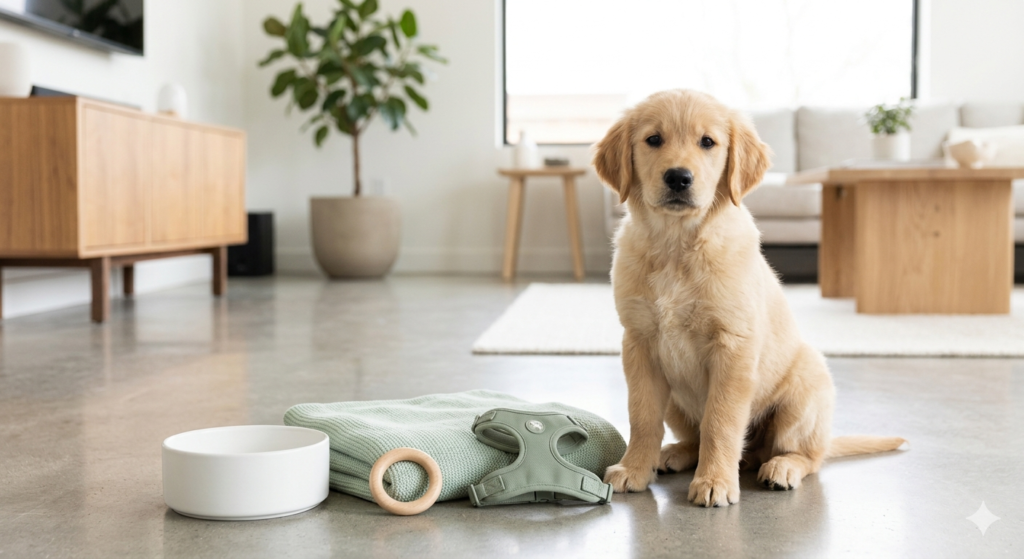 Apartment-friendly puppy essentials, minimalist setup picks, and early-routine upgrades for first-time owners.